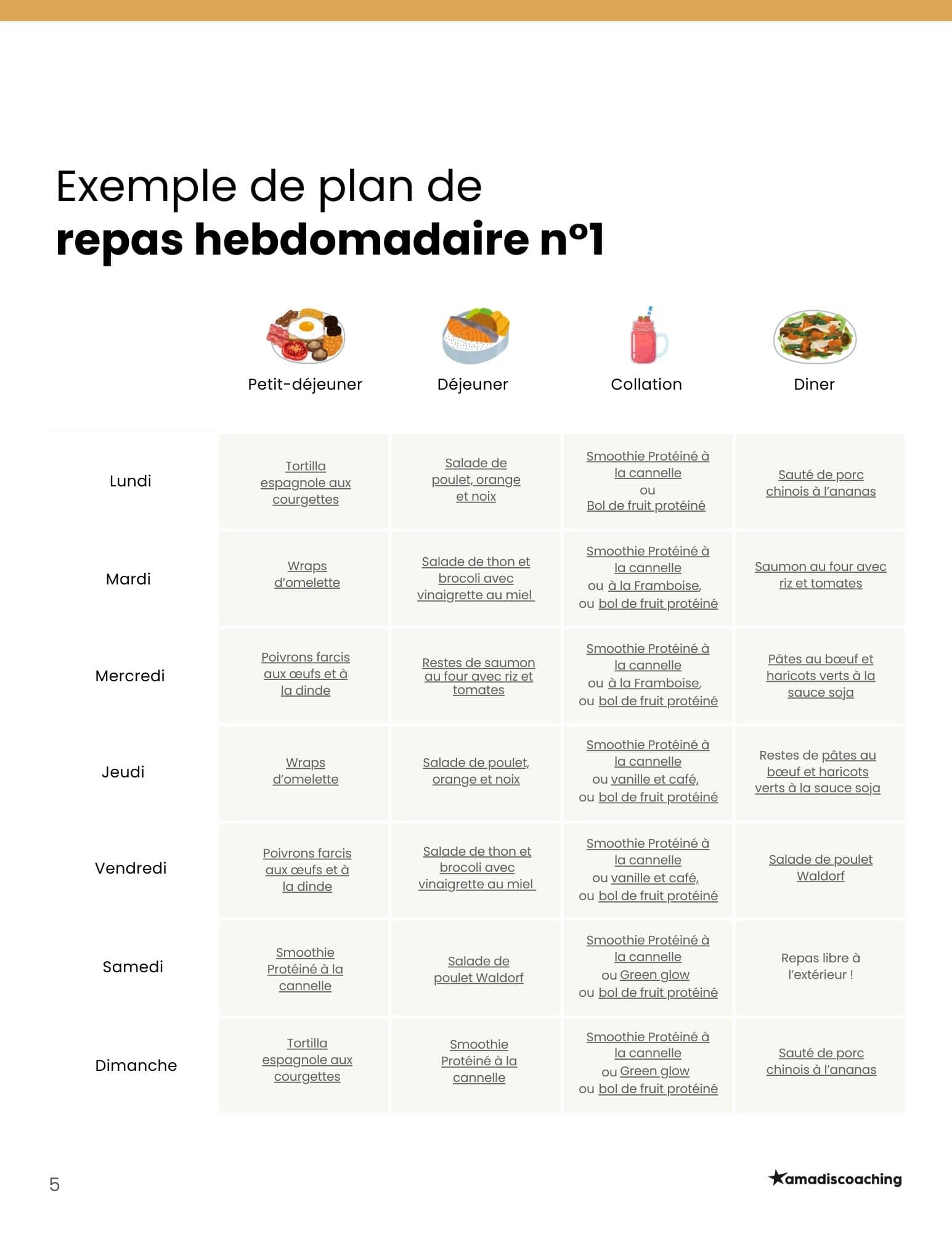 ✅ 2 plans de repas hebdomadaires : pour vous aider à structurer vos journées et optimiser vos apports.