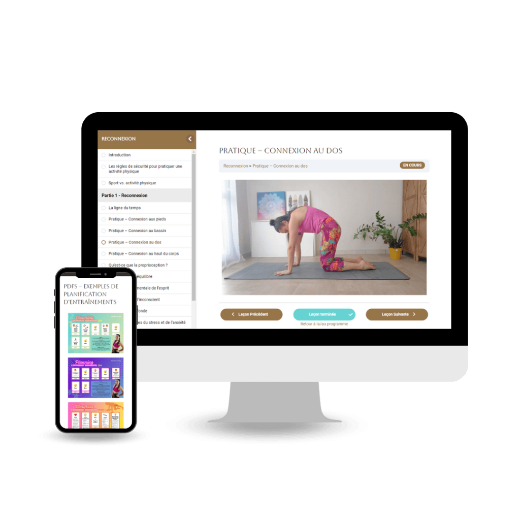 La raison : tu as clairement compris l’importance de prendre soin de toi et de ton corps, et tu es déterminée à faire des efforts. Ce qu’il te manque, c’est d’un côté une vision à long terme, une stratégie globale qui te corresponde, et d’un autre côté – et c’est normal – comprendre comment t’auto-corriger comme si tu te transformais en coach sportif. Sans cela, tes efforts s’éparpillent et ton énergie n’est pas dépensée de façon efficace En fait, tu n’as tout simplement pas les outils pour devenir autonome, confiante et libre dans tes entraînements à la maison ! La plupart des programmes sportifs en ligne te montrent les mouvements à effectuer, te donnent des consignes d’exécution, mais en réalité tu ne fais qu’essayer de reproduire des mouvements sans vraiment savoir où placer ta vigilance et tu manques de précision.